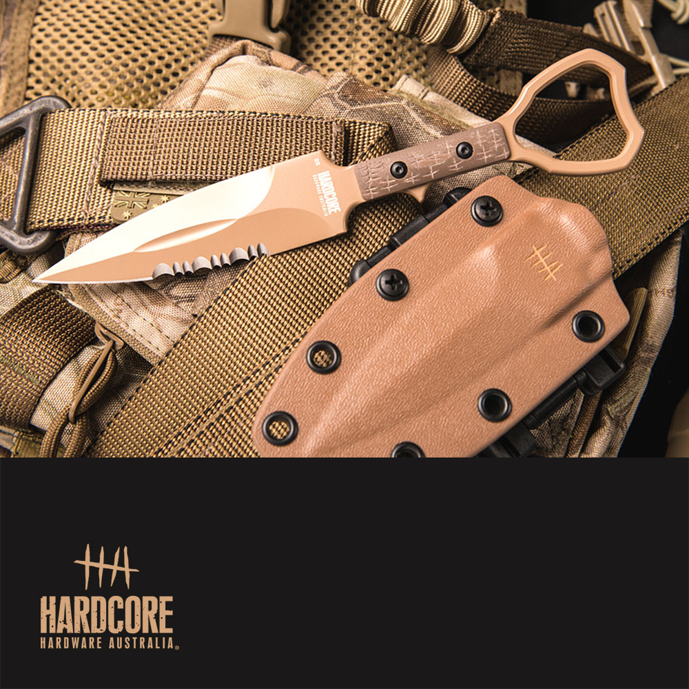 The Hardcore Hardware Australia® ASOT-01 H2HFW is designed as a fast access, multi-purpose CQB tool. The distinct bevelled ring enhances the tool's accessibility and comfort, making it exceptionally fast and easy to draw. This feature also enables transition to a rifle or hand-gun with no disconnection between the tool and firearm. The concave thumb recess at the top of the ring supports a positive grip and the application of downward force.