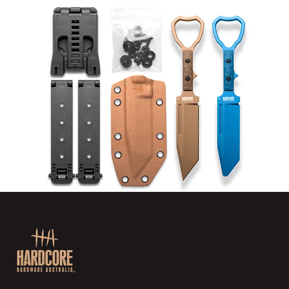 The Hardcore Hardware Australia® ASOT-02 Bundle Package includes a live edge ASOT-02 in your colour choice and an ASOT-02 Trainer in HIVIS blue.