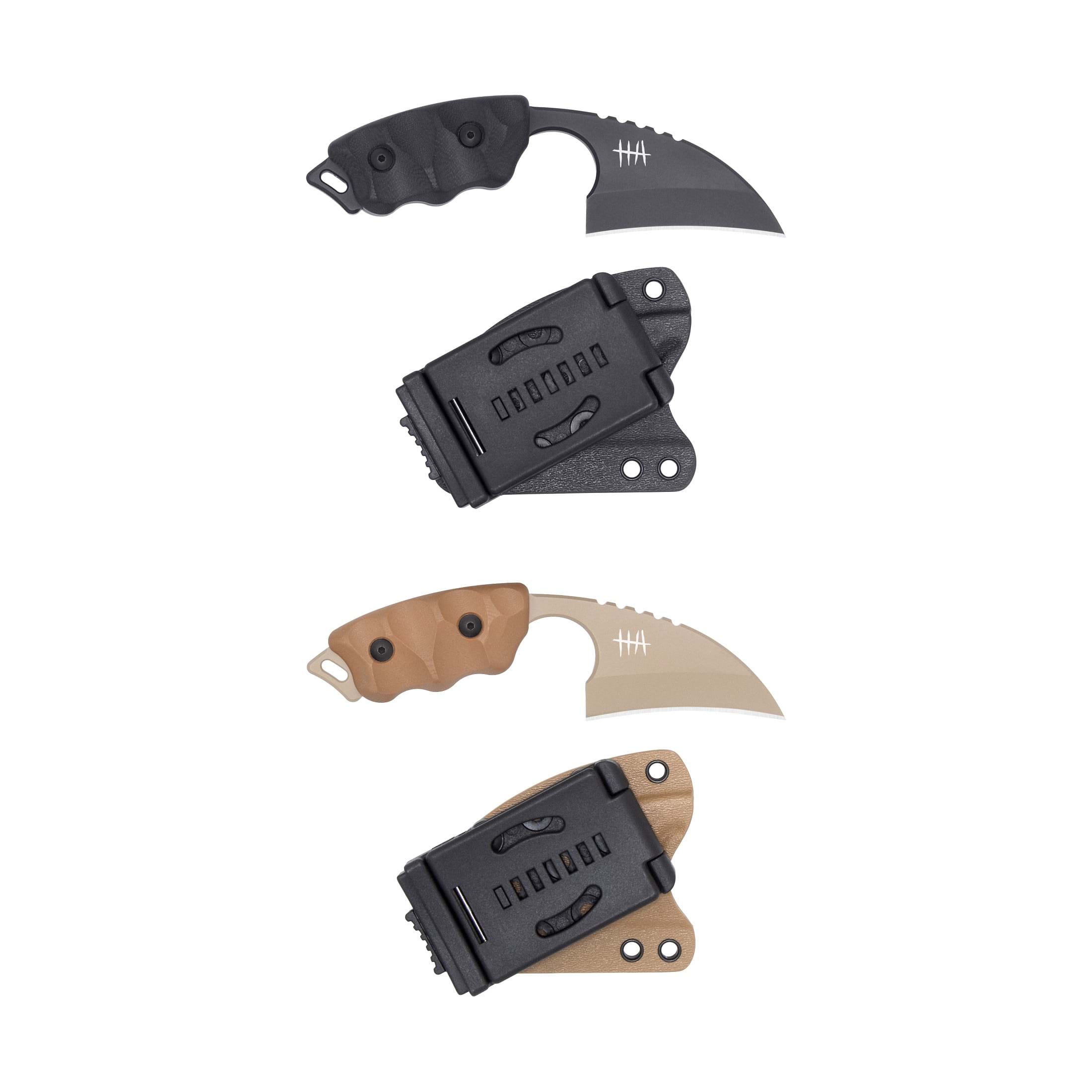 The LFK-01 kydex ambidextrous sheath comes supplied with a DOTS USA belt mounting option. A friction lock system fastens the tool securely in its sheath.