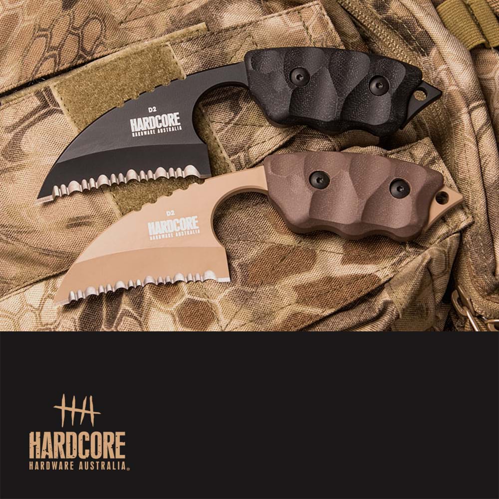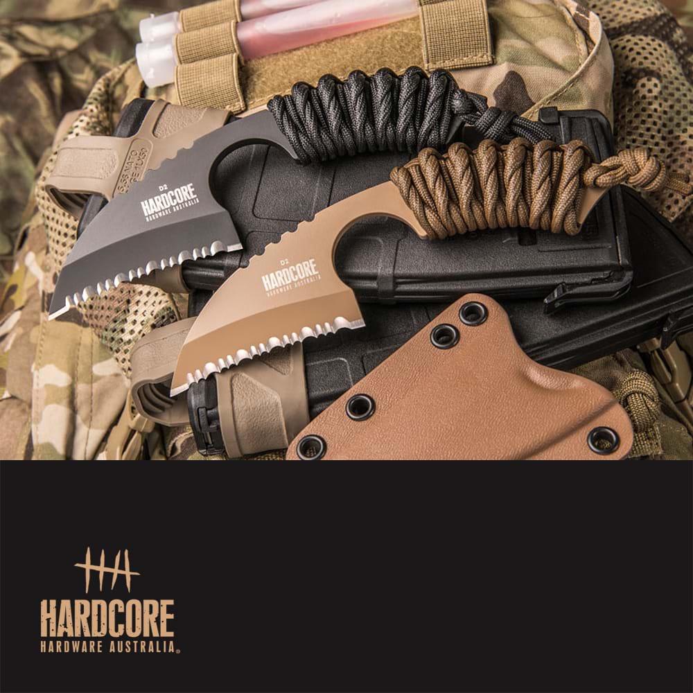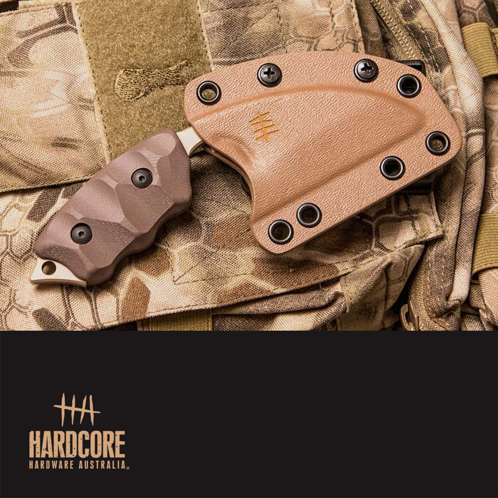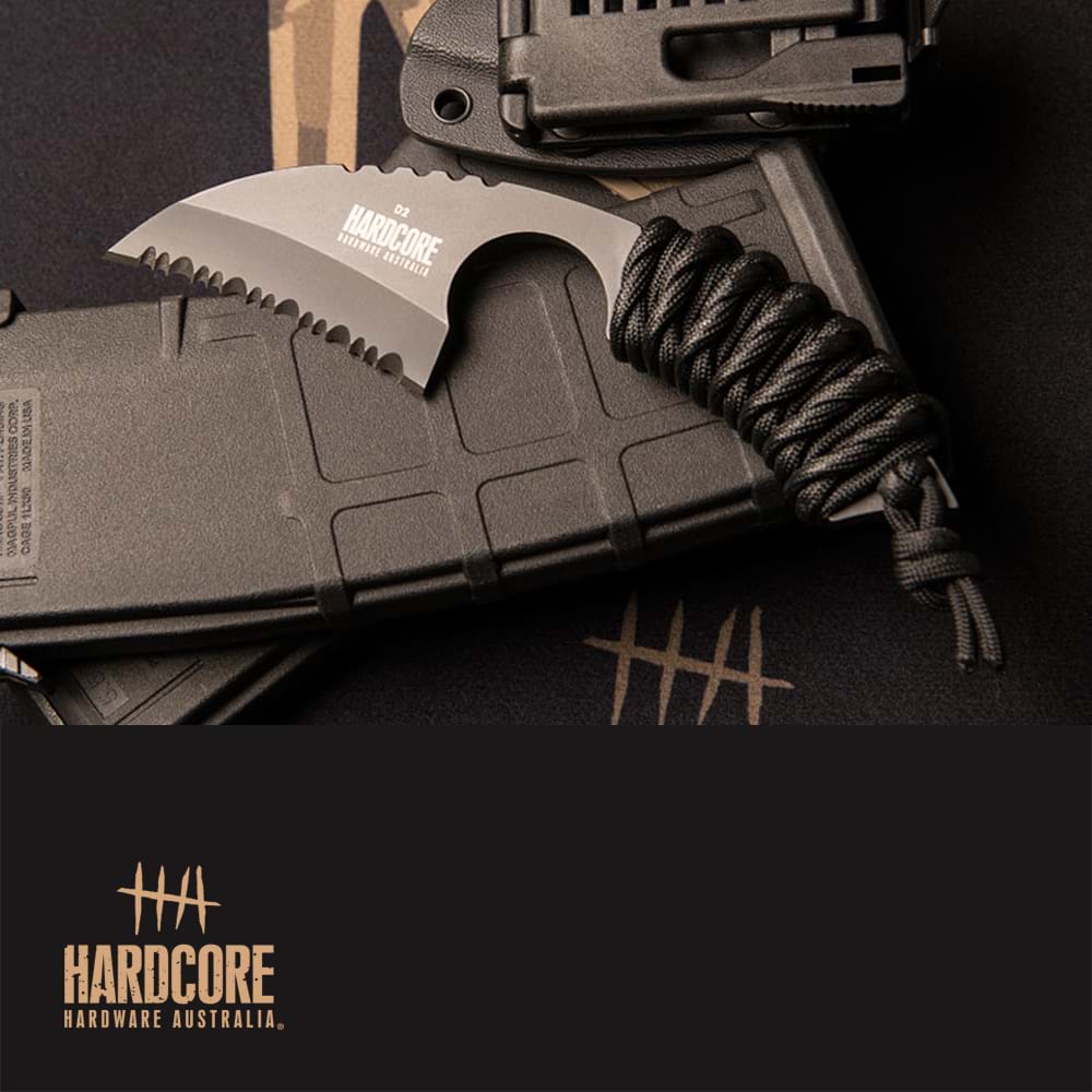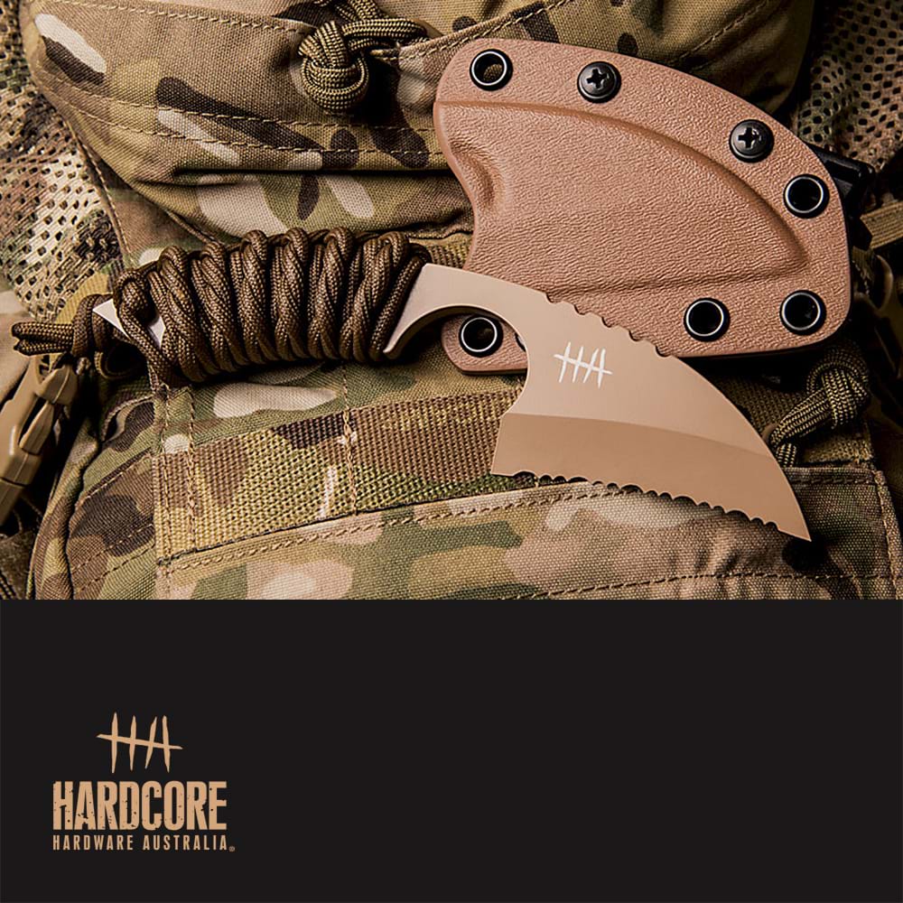 The Hardcore Hardware Australia® LFK Series tools are designed primarily as overt carry, easy to reach back- up knives with superior cutting capabilities. Due to its size and weight, the LFK is an ideal choice where space on an assault platform may be limited. These heavy-duty blades also bridge the gap where full-sized, fixed blade knives may be unmanageable, and a folder a poor compromise.