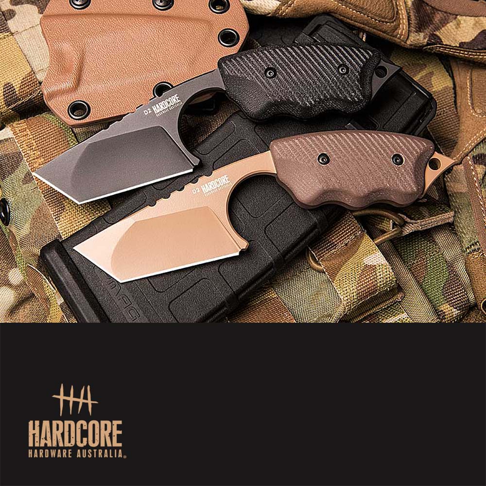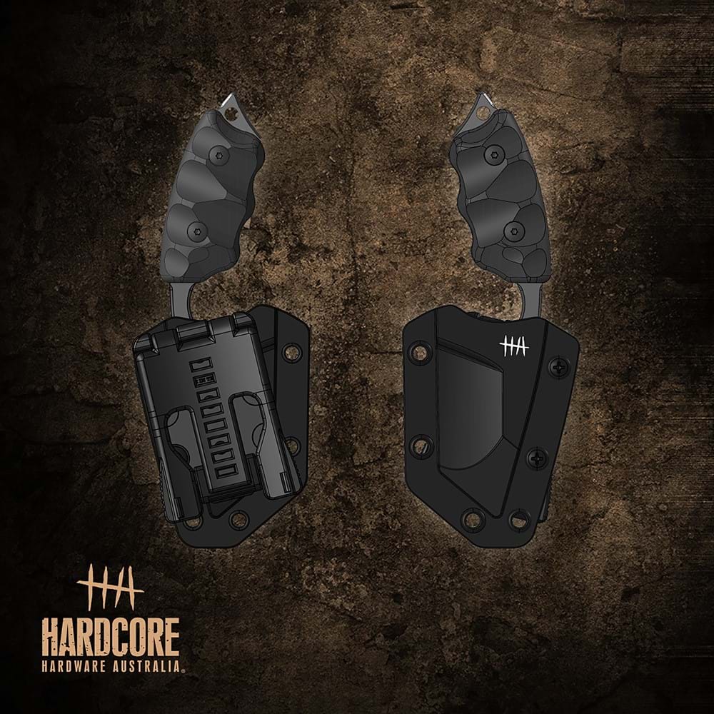 The Hardcore Hardware Australia® LFK Series tools are designed primarily as overt carry, easy to reach back-up knives with superior cutting capabilities. Due to its size and weight, the LFK is an ideal choice where space on an assault platform may be limited. These heavy-duty blades also bridge the gap where full-sized, fixed blade knives may be unmanageable, and a folder a poor compromise.